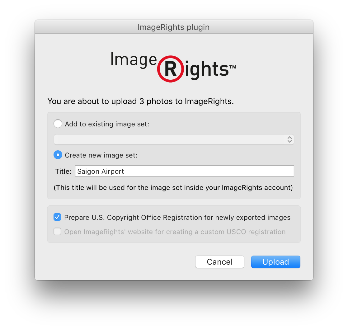 The ImageRights Plugin for Adobe Lightroom contains an export module, that allows you to easily upload images into your account for ImageRights Discovery and to submit your images for ImageRights' U. S. Copyright Office registration service.